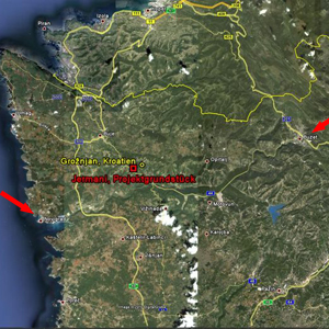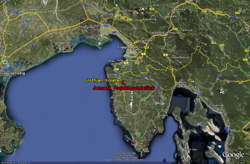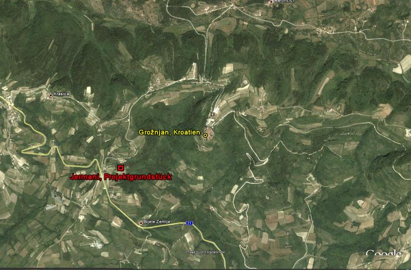 Jermani, der Standort der angebotenen Liegenschaften, ist ein Vorort von Grožnjan und liegt rund 8 km Luftlinie von Novigrad und dem Meer entfernt. Mit dem Auto beträgt die Entfernung rund 12 km.
